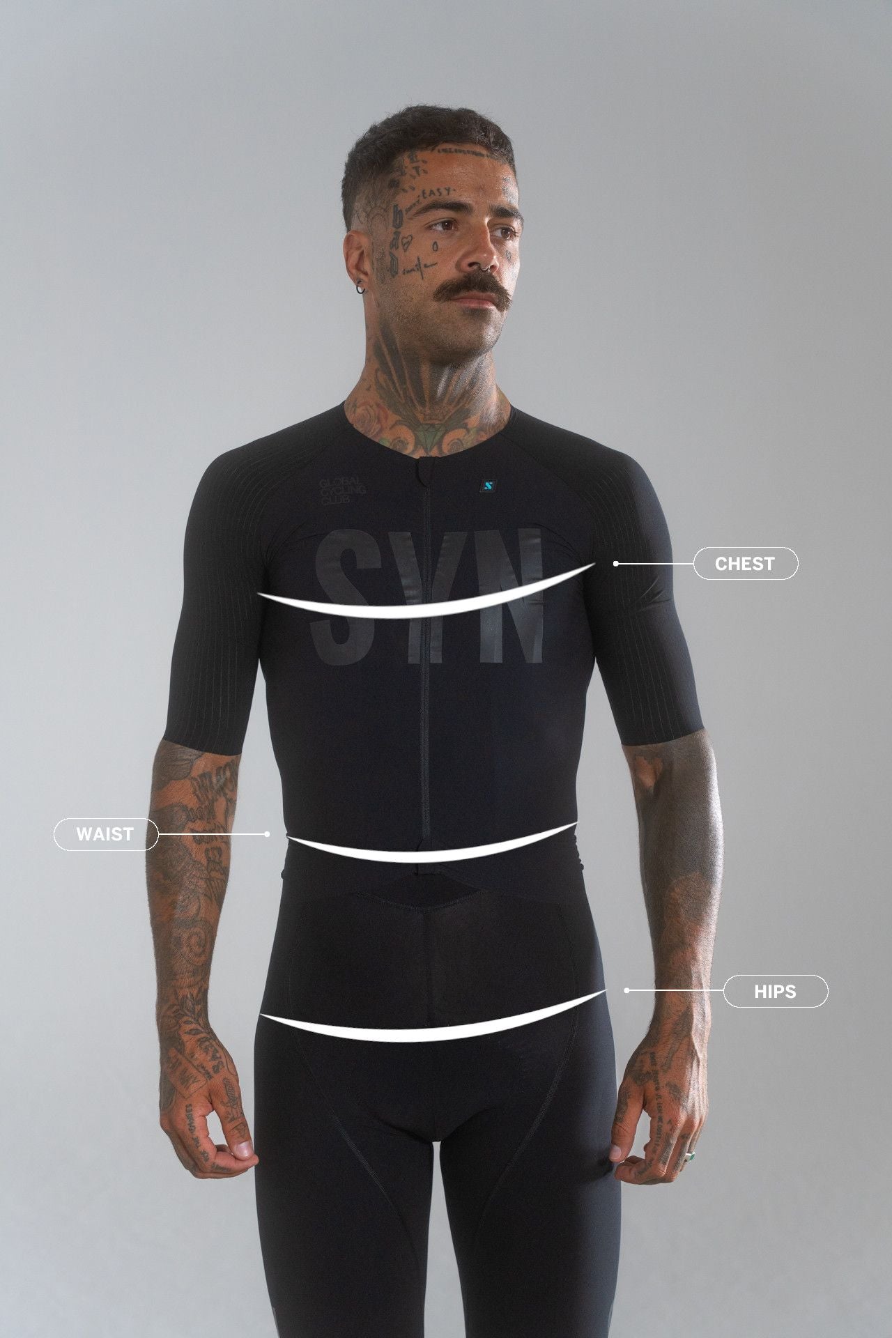 Alle SYN jerseys er designet i et moderne high-cut fit, hvor jersey’en er skåret til at sidde højere på maven - omkring lige under navlen - for optimal pasform i cykelposition.